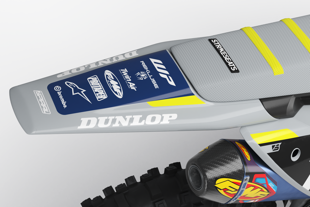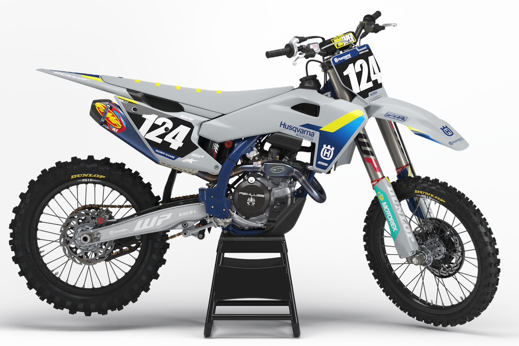 Kit graphique de motocross Husqvarna // Blanc Jaune fabriqué par SpiralGFX, sous licence KTM, Husqvarna et Gas Gas et imprimé sur les meilleurs matériaux avec un équipement d'impression de haute qualité.