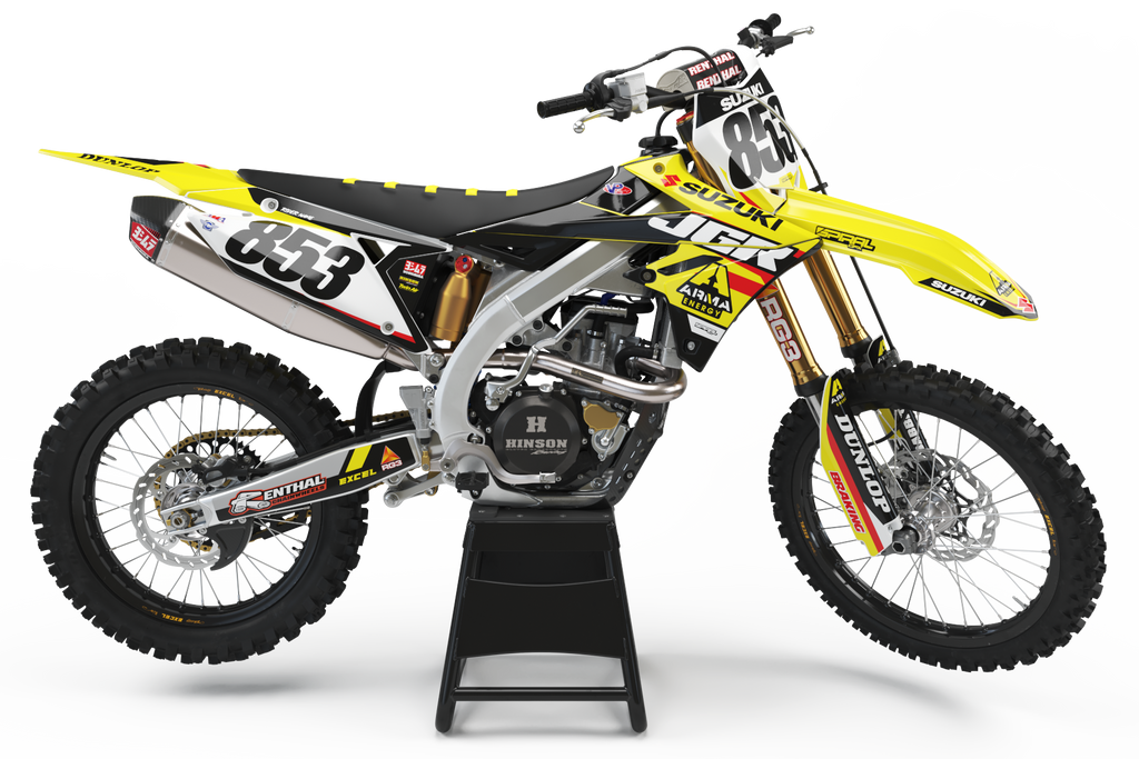 Kit graphique Suzuki // Sobe Motocross fabriqué par SpiralGFX, sous licence KTM, Husqvarna et Gas Gas et imprimé sur les meilleurs matériaux avec un équipement d'impression de haute qualité.