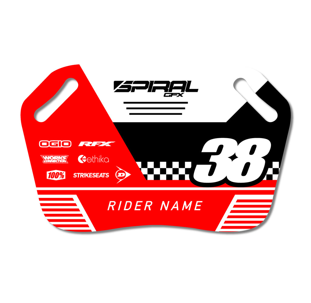 SpiralGFX Pitboard // Red // Made by SpiralGFX. Item is a complete pitboard customised with your rider name & number.
