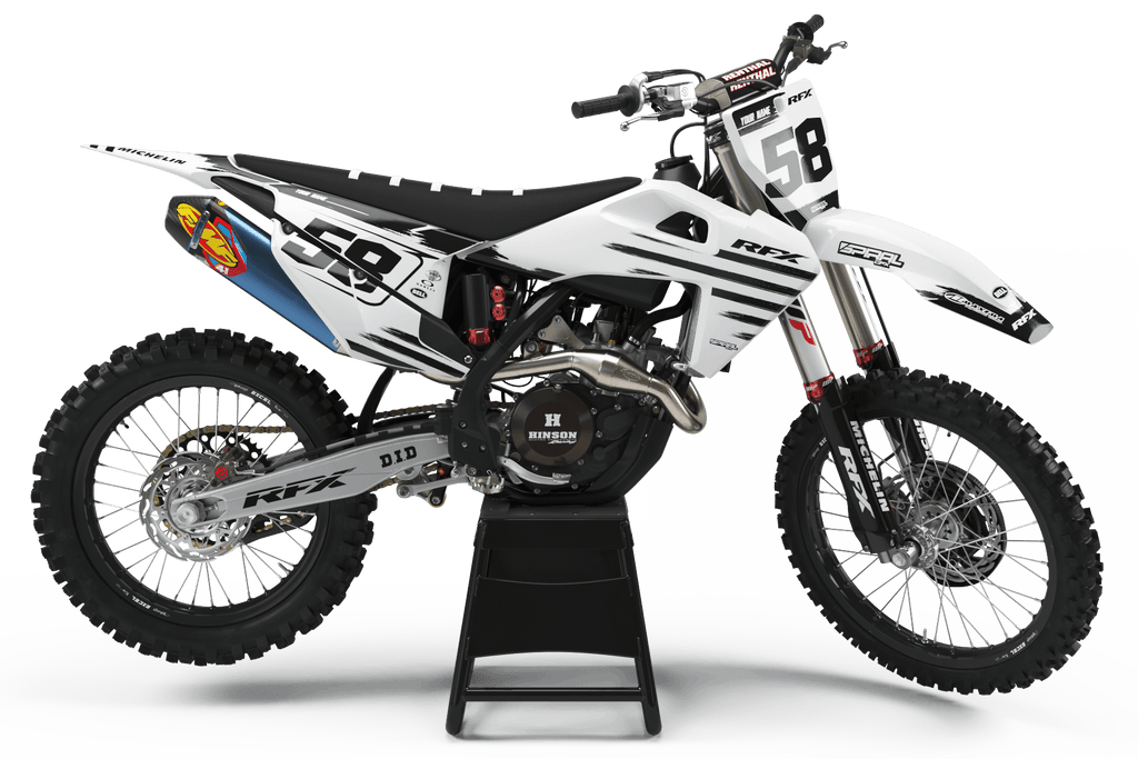 Husqvarna // Nationals White Motocross Graphics Kit made by SpiralGFX, Licensed by KTM, Husqvarna & Gas Gas and printed on the very best materials with high quality print equipment.