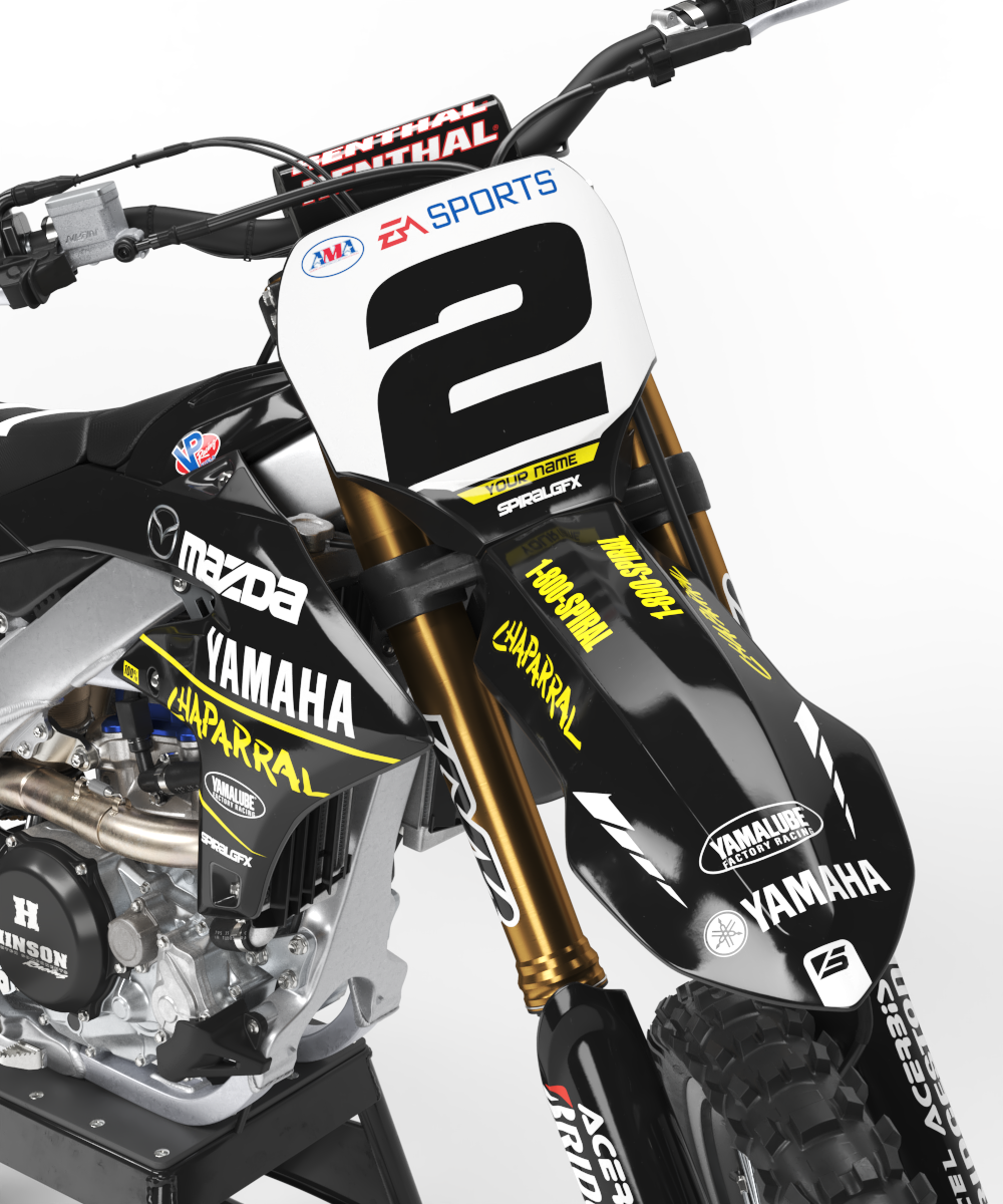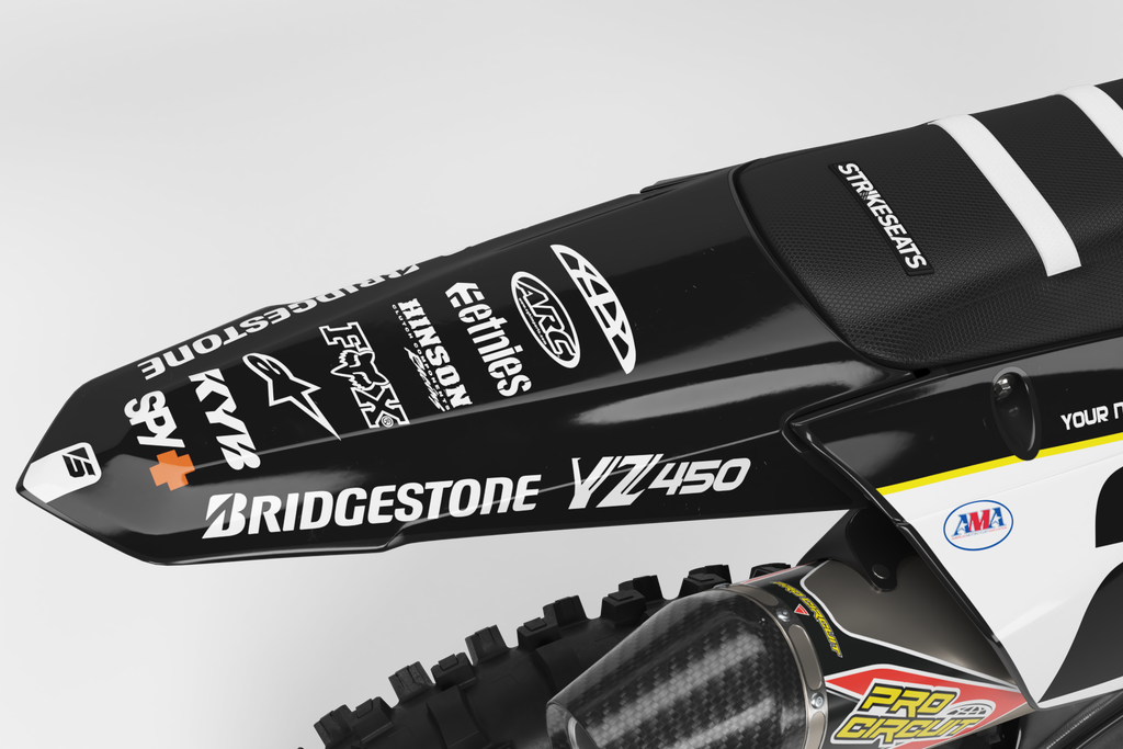 Yamaha // Stamp Black (All Bikes) Motocross Graphics Kit made by SpiralGFX, Licensed by KTM, Husqvarna & Gas Gas and printed on the very best materials with high quality print equipment.