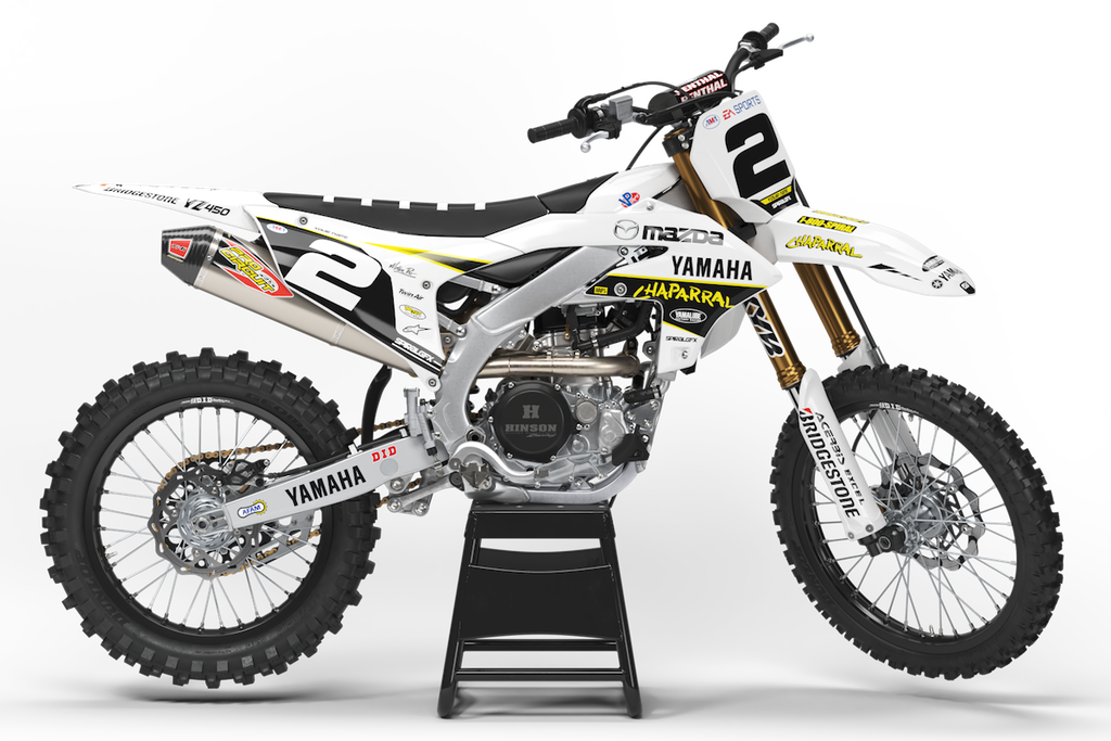 Yamaha // Stamp White (All Bikes) Motocross Graphics Kit made by SpiralGFX, Licensed by KTM, Husqvarna & Gas Gas and printed on the very best materials with high quality print equipment.